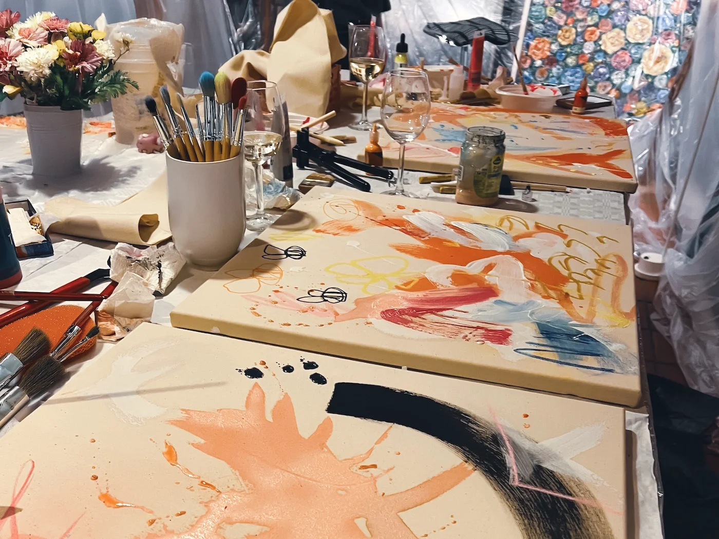 Türen auf, Gläser hoch! Erstmal ganz entspannt im Atelier ankommen, einen Welcome-Drink schnappen & umschauen.